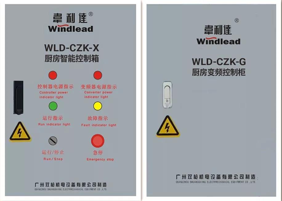 系统由WLD-CX机械式集烟罩饮食业油烟净化一体设备(商厨风动脱油智能变频节能烟罩)、 WLD-JD静电式饮食业油烟净化器(多级油烟净化器)、 GLD-HC厨房专用后倾风柜、 WLD-S湿式饮食业油烟净化设备(水膜填充式油烟净化器)、以及 WLD-CZK-X厨房智能控制箱、 WLD-CZK-K厨房变频控制柜组成。
