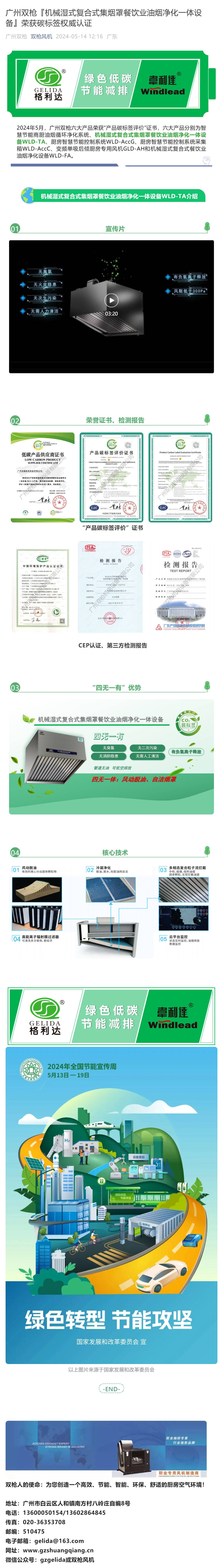 广州双枪『机械湿式复合式集烟罩餐饮业油烟净化一体设备』荣获碳标签权威认证