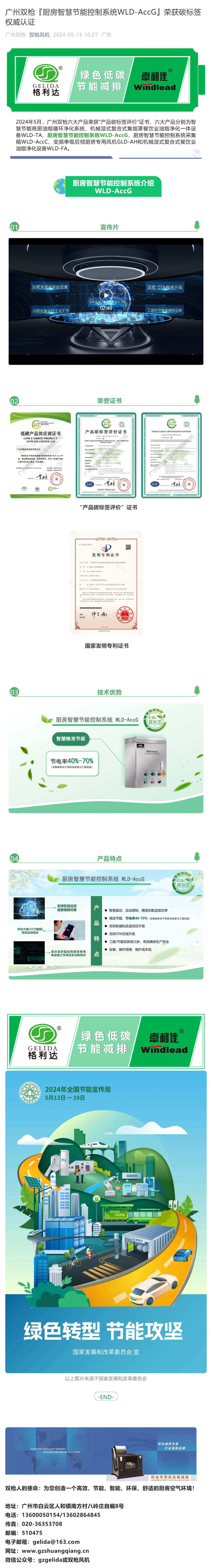 广州双枪『厨房智慧节能控制系统WLD-AccG』荣获碳标签权威认证
