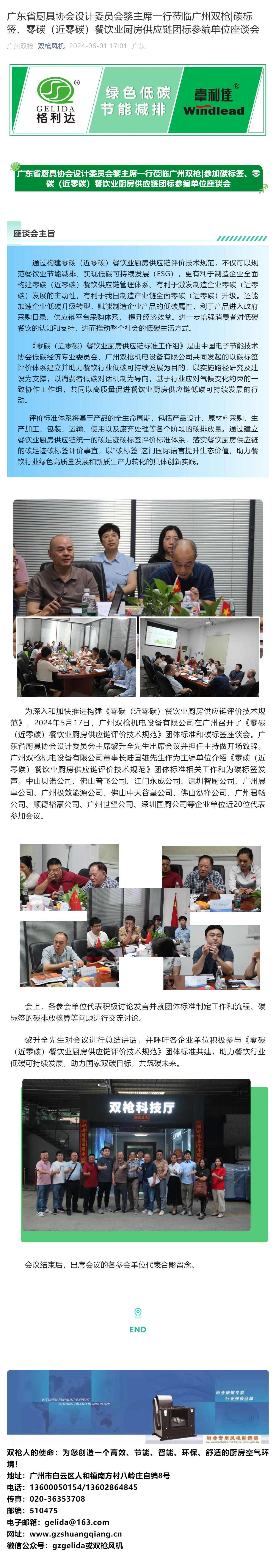 广东省厨具协会设计委员会黎主席一行莅临广州双枪|碳标签、零碳(近零碳)餐饮业厨房供应链团标参编单位座谈会