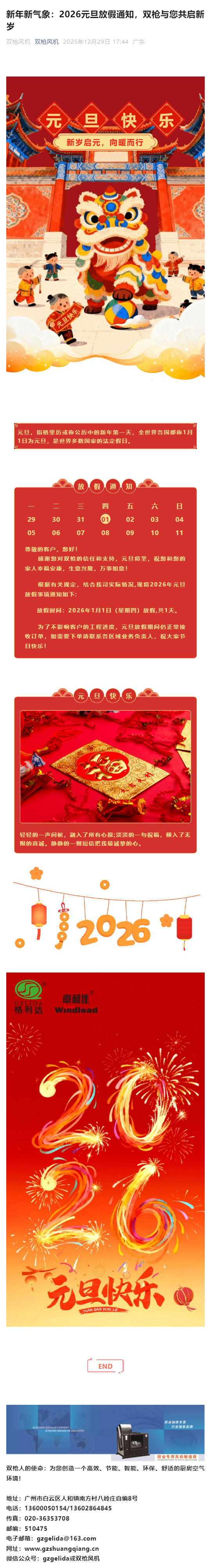 新年新气象:2026元旦放假通知,双枪与您共启新岁