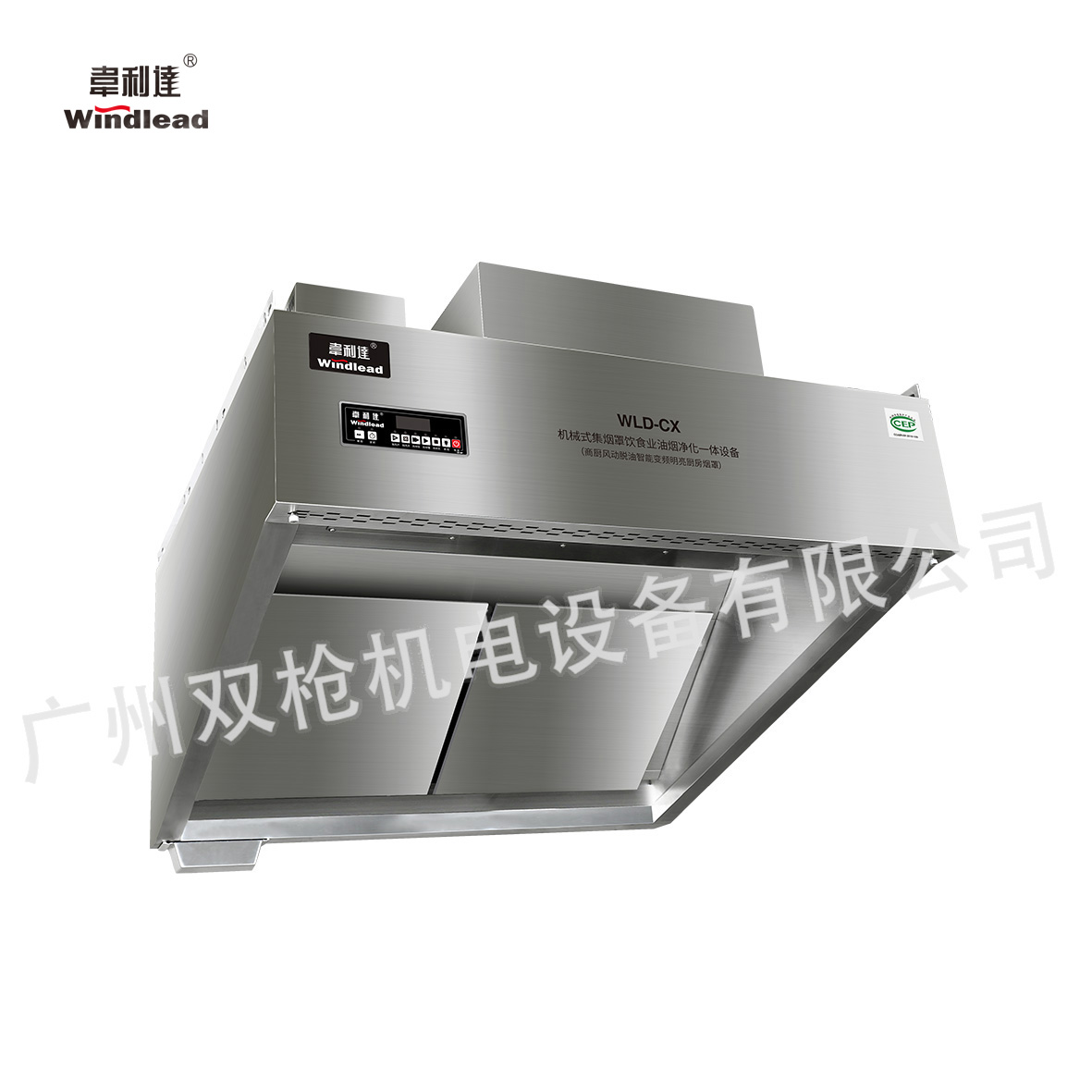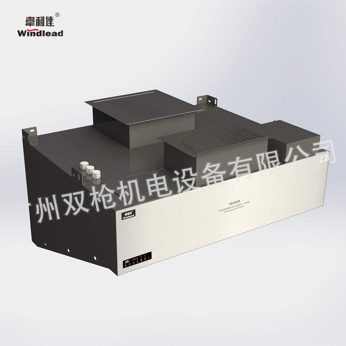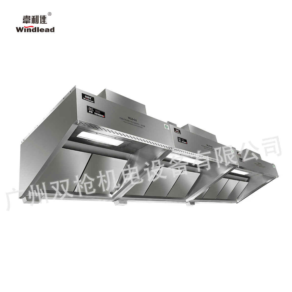 2、采用风幕屏蔽技术,油烟不外溢,大幅节省排风量(来源于双枪实验室对标《全国民用建筑工程设计技术措施:暖通空调.动力》(2009版)4.2厨房通风),3D立体环吸冷凝板,提风速,聚油烟,降温度,提升油水分离度。侧吸式结构设计,近距离锁住油烟不外溢,适合厨房安装高度不够的场合;